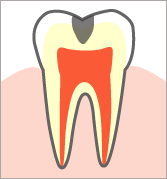 虫歯は口の中の汚れ(プラーク)にすみつく虫歯菌(主としてミュータンス菌)に感染することから始まります。この虫歯菌は口の中に入る糖分を栄養として酸を作り出し、酸に弱い歯の表面(エナメル質)を溶かし歯に穴をあけてしまいます。こうして虫歯は進行していきますが、虫歯には進行により各段階があり、またそれぞれ治療方法も変わってきます。放置すればそれだけ虫歯は進行してしまうので早期発見が非常に大切になりますので、定期的に検診を受けましょう。