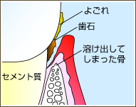 歯周病は、プラークや歯石の中に棲みつく歯周病菌が毒素を出して歯ぐきに炎症を起こし、歯を支える顎の骨を徐々に溶かしていく病気です。日本における成人の約8割が初期の歯周病にかかっているか、その予備軍である歯肉炎にかかっているといわれ、歯を失う最大の原因とされています。