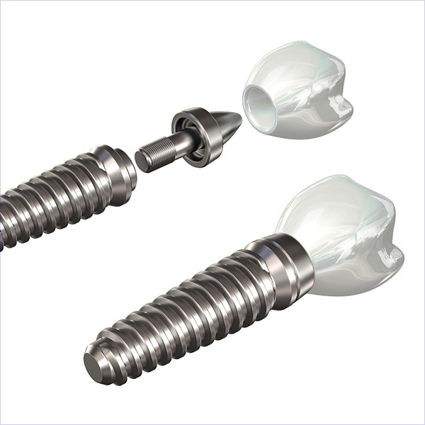 歯を失ってしまったあとに、顎の骨の中に人工歯根(インプラント体)を埋め込み、歯の支えとする方法です。取りはずしの必要がなく、ご自分の歯に近い噛み心地が得ることができます。